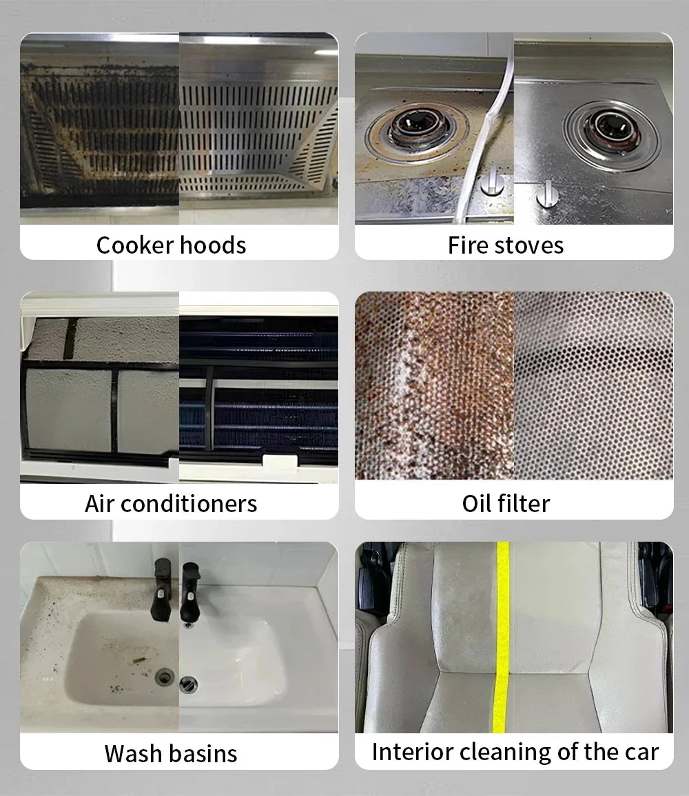 Multi-purpose use on various surfaces including air conditioners, kitchen hoods, cars, and floors