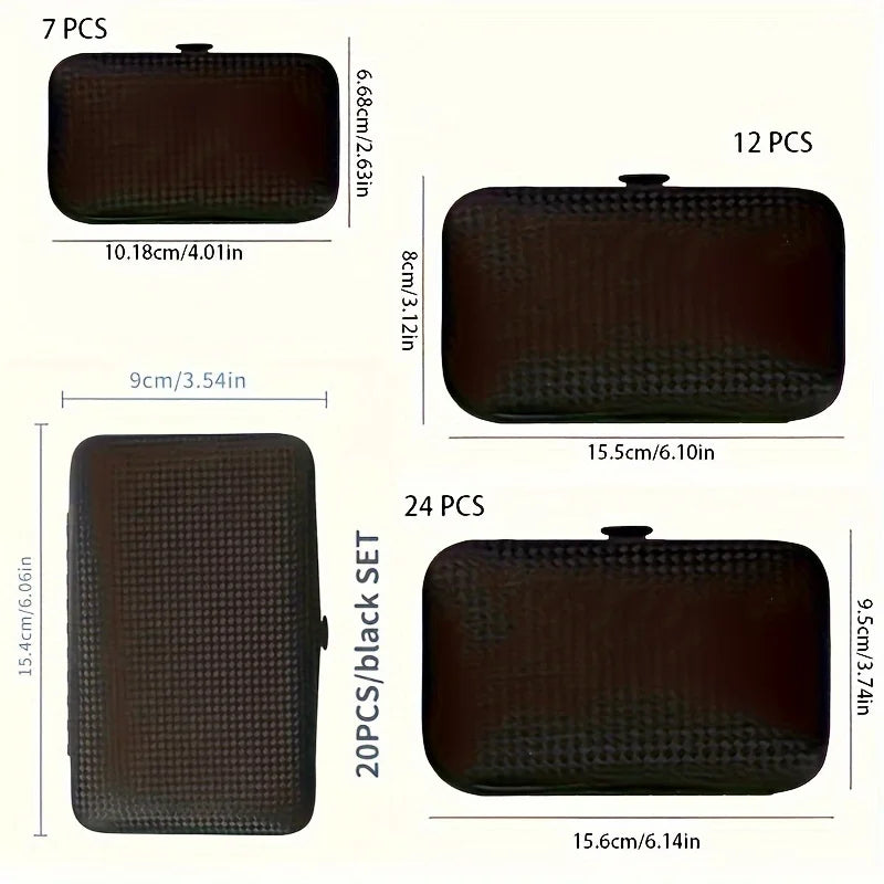 Achieve salon-quality grooming at home with our Professional Nail Clippers Kit. Offering sets ranging from 7 to 24 pieces, this comprehensive manicure and pedicure kit provides every tool needed for perfect hand, foot, and facial care.