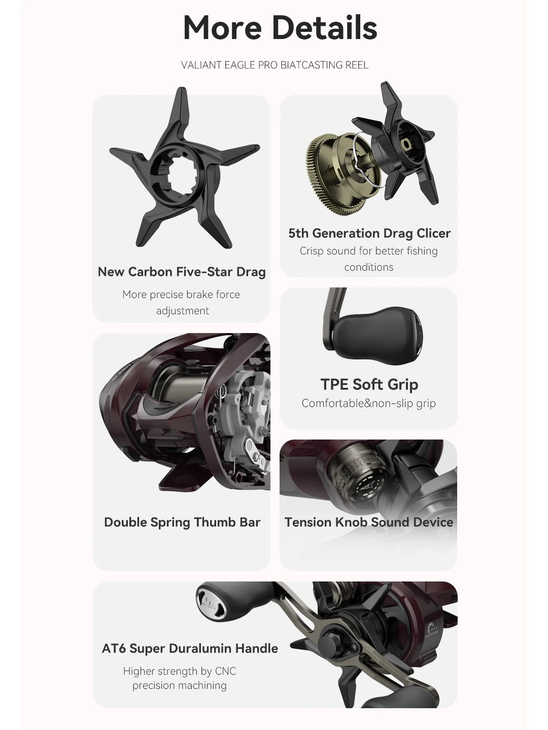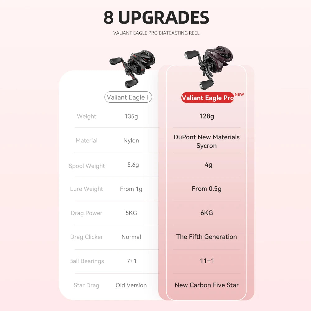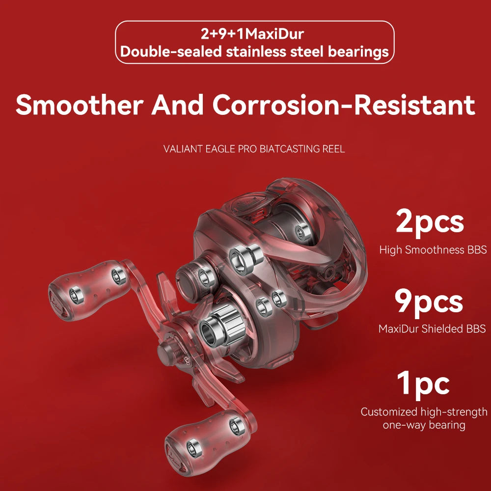 Experience precision and power with the KastKing Valiant Eagle II Pro Baitcasting Reel. Featuring a 6kg max drag and an 8.4:1 high-speed gear ratio, this reel is perfect for bass and pike fishing enthusiasts seeking smooth performance and durability.
