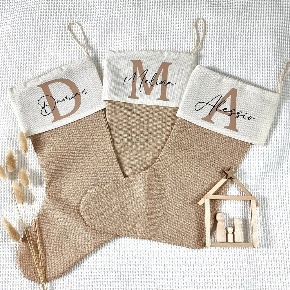 Make your Christmas extra special with this Personalized Santa Stocking. Featuring a customizable name letter boot, this fill sock from Santa is perfect as a personalized gift and charming Christmas tree decoration.