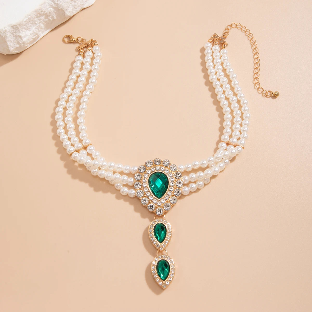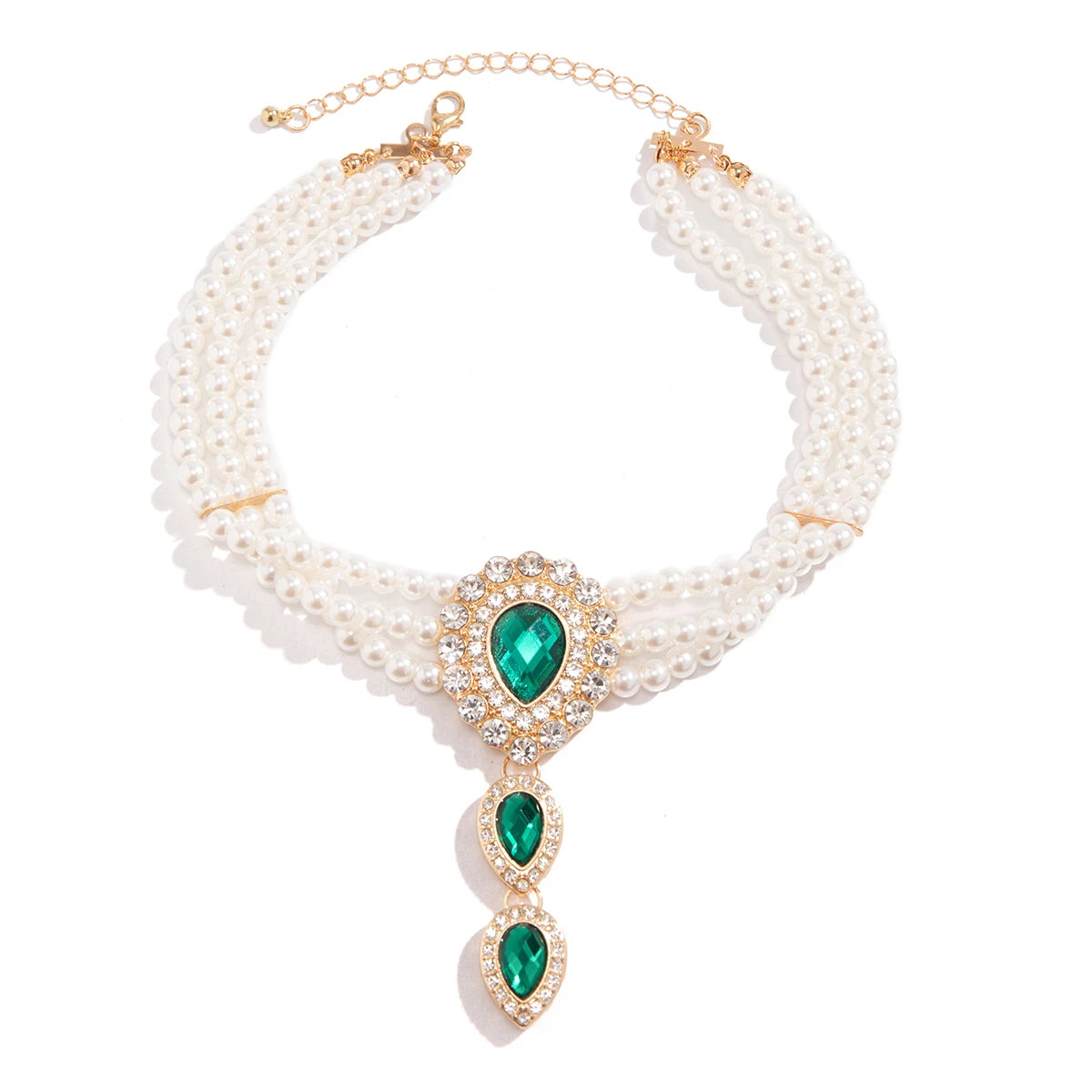 Elevate your style with the Purui Elegant Rhinestone Drop Shape Pendant Choker. Featuring multilayer imitation pearls and sparkling rhinestones, this green and white neck chain necklace is perfect for women seeking a chic and sophisticated accessory. Ideal for parties, special occasions, or everyday elegance.