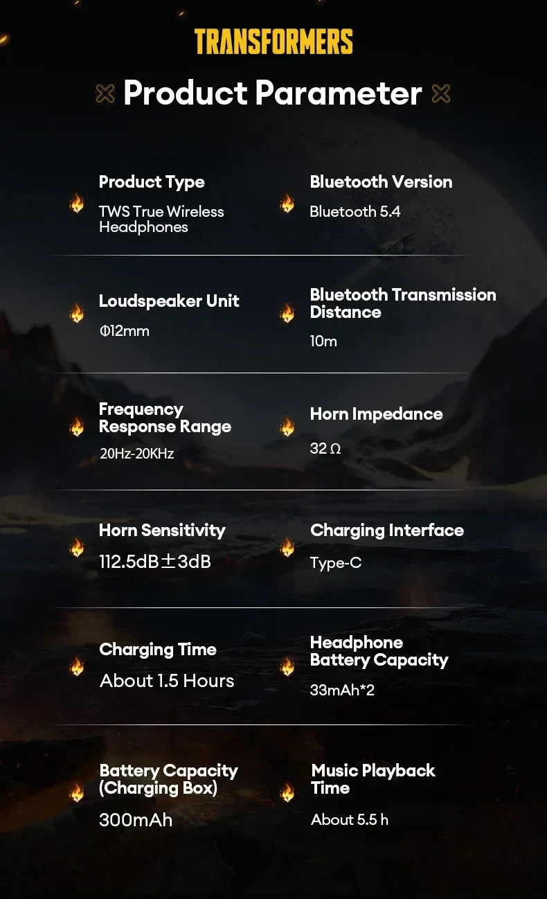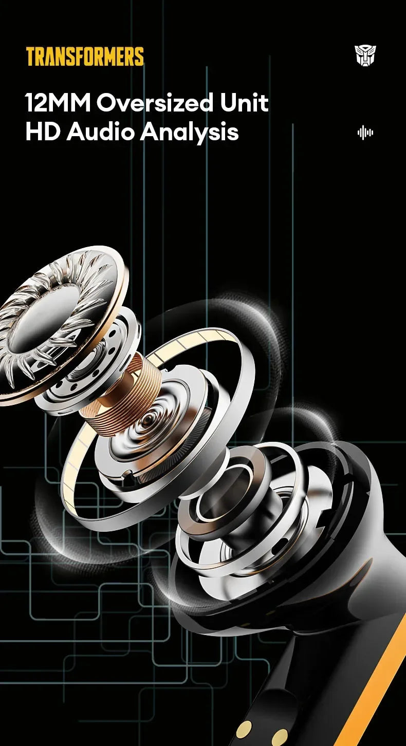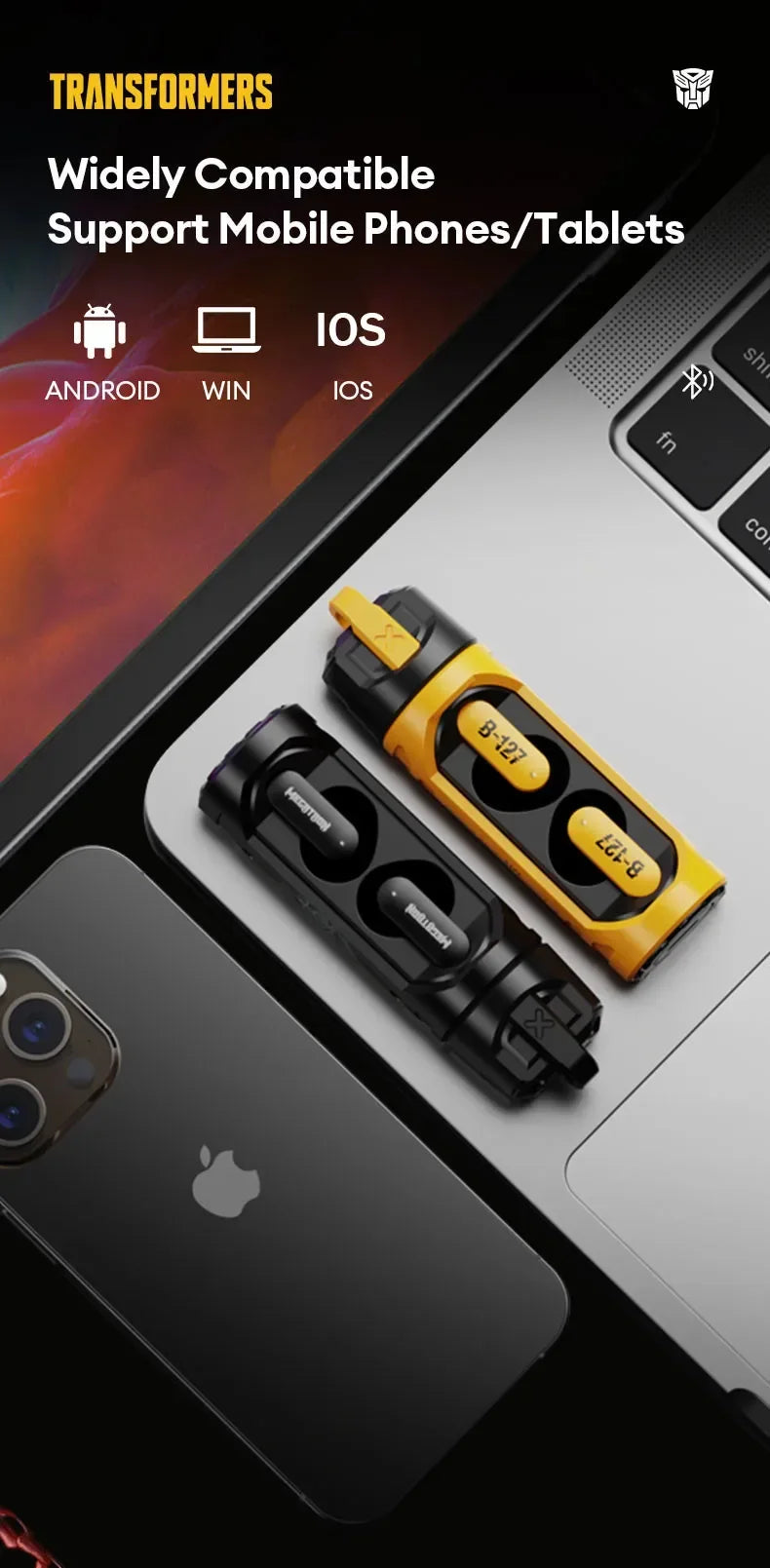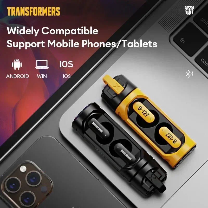 Dominate the battlefield of sound with the official TRANSFORMERS TF-T11 Bumblebee Earphones. These aren't just headphones—they're a high-performance piece of tech engineered for endurance, clarity, and style. Designed with the legendary Yellow and Black aesthetics of the iconic Autobot, these Bluetooth Wireless Earbuds deliver an immersive audio experience for gaming, music, and sports.
